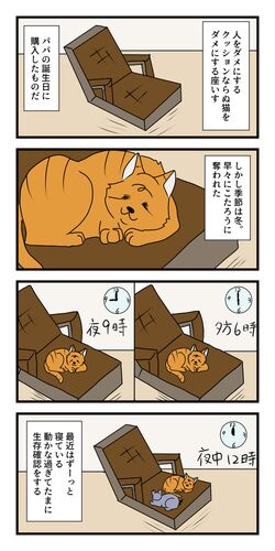 第47話 後編 前編はこちら↓↓↓ hogonekoto.com 座椅子は誰のもの? 後編 後編です! 購入した時期は冬です。ふっかふっかの座椅子です。 当然こうなります( *´艸`) 猫達を優先してくれるパパなのでどかしたりしません。 特にあずきに馴れてほしいパパです…