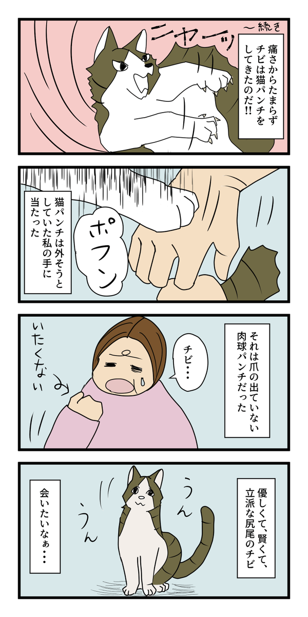 チビの優しい肉球パンチに感動して当時、色んな人にこのエピソードを話したのを覚えています。